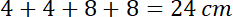 e) Jeden bok prostokąta ma 4 cm, a drugi jest dwa razy dłuższy. Oblicz obwód tego prostokąta.