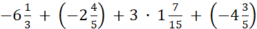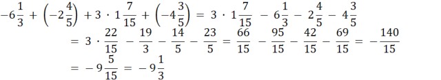 Dodawanie liczby ujemnej możemy zastąpić odejmowaniem jej wartości bezwzględnej. Żeby dodać lub odjąć ułamki sprowadzamy je do wspólnego mianownika, zamieniamy na ułamek niewłaściwy i odpowiednio dodajemy lub odejmujemy.
