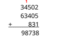 34502 + 63405 + 831 = 98738
