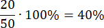 Podziel 20 przez 50, a otrzymany ułamek zamień na procenty: