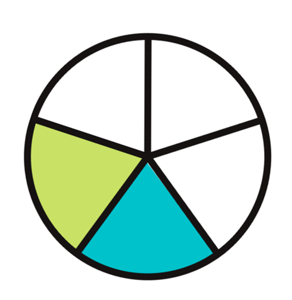 Kolorem np. niebieskim należy pokolorować jedna część, a np. zielonym inną jedną. Łącznie pokolorowano