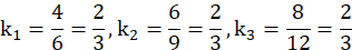 Do stwierdzenia czy trójkąty są podobne musisz sprawdzić, czy stosunki boków w trójkącie są sobie równe. Stosunki