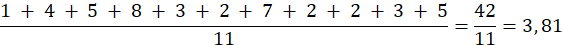 Mediana: 3 ⟹ 1, 2, 2, 2, 3, 3, 4, 5, 5, 7, 8