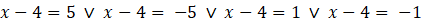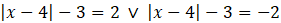 Przy algebraicznej metodzie rozwiązania najpierw opuść zewnętrzną wartość bezwzględną, dzieląc przy tym równanie na alternatywę dwóch przypadków. Następnie to samo powtórz dla każdego z otrzymanych równań. Rozwiąż otrzymane równania liniowe. Połącz wszystkie rozwiązania w jeden zbiór.