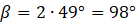 Aby obliczyć miarę kąta α wyznacz najpierw miarę kąta β, który jest kątem środkowym opartym na tym samym łuku co kąt 49°. Następnie skorzystaj z sumy miar kątów w trójkącie równej 180° oraz z tego, że trójkąt, którego ramionami są promienie okręgu, jest równoramienny. Wyznacz wartość α.
