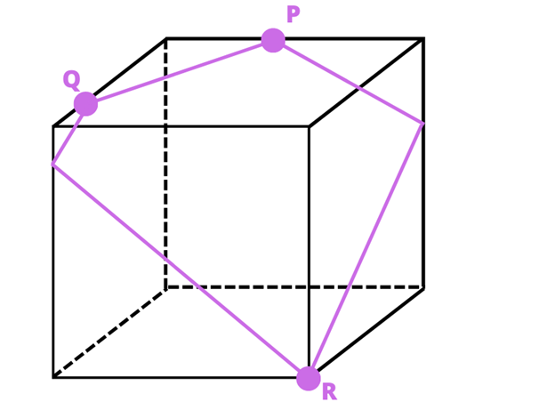 W tym zadaniu musisz skonstruować przekrój sześcianu płaszczyzną (PQR).