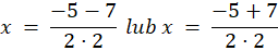 Aby rozwiązać powyższe równanie, skorzystaj z następujących wzorów: ∆ = b2 – 4ac oraz x1 =