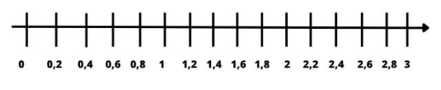 0; 0,2; 0,4; 0,6; 0,8; 1; 1,2; 1,4; 1,6; 1,8; 2; 2,2; 2,4; 2,6; 2,8; 3.
