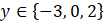 Dziedziną funkcji jest zbiór takich argumentów x, dla których funkcja jest określona. Funkcja jest określona dla poszczególnych punktów, zatem wszystkie te punkty będą dziedziną funkcji. Zbiorem wartości funkcji jest zbiór wszystkich wartości, które przyjmuje funkcja. Funkcja z rysunku przyjmuje jedynie wartości -3, 0 i 2, zatem jej zbiorem wartości jest zbiór