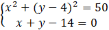 Rozwiąż układ równań, wyznaczając z równania prostej jedną niewiadomą, a następnie podstawiając zmienne do równania okręgu.