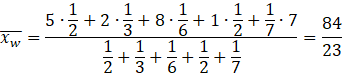 Oblicz średnią ważoną zestawu liczb 5, 2, 8, 1, 7, którym przypisano odpowiednio wagi: