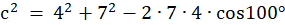 Korzystasz z twierdzenia cosinusów i wyznaczasz długość odcinka oznaczonego literą c.
