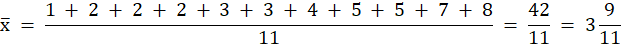 W tym zadaniu musisz obliczyć średnią arytmetyczną, medianę i dominantę zestawu liczb 1, 4, 5, 8, 3, 2, 7, 2, 2, 3, 5