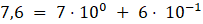 Zapisz 7,6 jako sumę liczb pomnożonych przez liczbę 10 w odpowiedniej potędze.