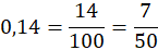 Zamień liczbę 0,14 na ułamek nieskracalny.