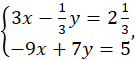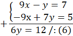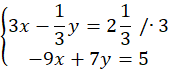 Pomnóż pierwsze równanie przez 3, aby otrzymać przy niewiadomej x liczby przeciwne, a następnie dodaj do siebie równania.