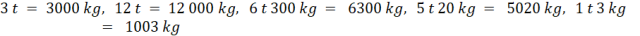 Zamieniając kilogramy na dekagramy, mnożymy razy 100, czyli dopisujemy dwa zera. Zamieniając kilogramy na gramy, mnożymy razy 1000, czyli dopisujemy trzy zera. Zamieniając tony na kilogramy, mnożymy razy 1000, czyli dopisujemy trzy zera.