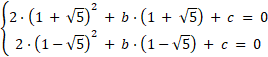 są pierwiastkami trójmianu, to wartości dla tych argumentów są równe zero. Następnie tworzymy układ równań z dwiema niewiadomymi, który rozwiązujemy.