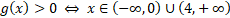 Argumenty, dla których funkcja przyjmuje wartości dodatnie, to zbiór x-ów, dla których funkcja znajduje się nad osią OX.
