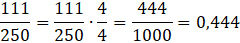 W tym zadaniu musisz sprawdzić, która z kolejnych potęg 10 dzieli się przez 250. W kolejnym kroku rozszerz ułamek tak, żeby w mianowniku była ta potęga 10 a następnie musisz zapisać ułamek w postaci dziesiętnej.