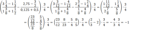 W tym zadaniu musisz wyliczyć liczniki i ułamki w obu ułamkach. W kolejnym kroku musisz podzielić liczniki przez mianowniki. Następnie musisz odjąć wyniki od siebie i przemnożyć powstałą liczbę przez ułamek stojący za nawiasem.