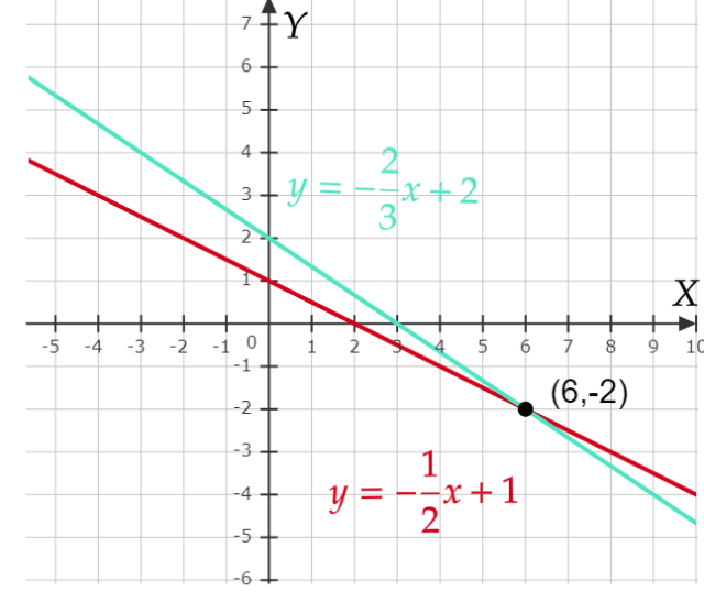 Rozwiązaniem graficznym podanego układu jest punkt przecięcia obu prostych na wykresie. Przekształć obie proste do wygodniejszej postaci, najlepiej kierunkowej. Do naszkicowania prostych stwórz ich tabelki, wybierz dwa dowolne argumenty i wyznacz odpowiadające im wartości ze wzoru. Sprawdzenie polega na wstawieniu współrzędnych punktu przecięcia do początkowych równań. Jeżeli wynik się zgadza, to znaczy, że punkt został wyznaczony poprawnie.