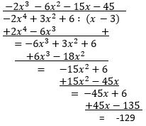 Pierwszy od lewej wyraz wielomianu kwadratowego dzielimy przez pierwszy wyraz podanego dwumianu. Następnie mnożymy go przez dzielnik x - 4 i wynik podpisujemy pod dzielną i odejmujemy go od niej poprzez dodanie wielomianu o przeciwnych współczynnikach. Otrzymujemy pierwszą resztę z dzielenia w ten sposób. Powtarzamy opisaną procedurę, dopóki nie otrzymamy wielomianu stopnia niższego niż dwumian przez które dzielimy. Jeśli jest to wieloma zerowy, to wieloma dzieli się bez reszty.