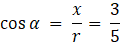 r to odległość od początku układu współrzędnych do punktu wyznaczającego ramię tego kąta. W tym przypadku wynosi ona 5. Druga współrzędna tego punktu jest równa 4. Pierwszą współrzędną tego punktu wyznaczysz, korzystając z twierdzenia Pitagorasa: