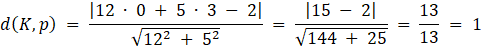 W tym zadaniu musisz wyznaczyć odległość punktu K od prostej p, korzystając z odpowiedniego wzoru.