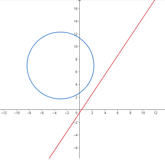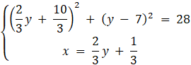 Aby podać interpretację geometryczną układu równań, należy narysować w jednym układzie współrzędnych okrąg i prostą opisane przez ten układ równań.