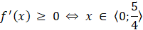 Powinieneś wyznaczyć przedziały, na których powyższa pochodna przyjmuje wartości dodatnie, a na których ujemne.