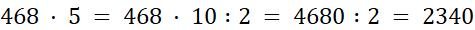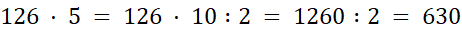 Przy mnożeniu przez 5, pomnóż przez 10, a następnie podziel przez 2. Przy mnożeniu przez 50, pomnóż przez 100, a następnie podziel przez 2.