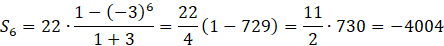 W tym zadaniu musisz obliczyć sumę sześciu początkowych wyrazów ciągu geometrycznego 22, -66, 198, … .