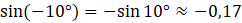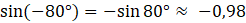 Dane są kąty: -80°, -10°, wyznacz wartości ich sinusów.