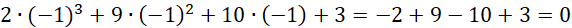 Znajdź pierwiastek całkowity wśród dzielników wyrazu wolnego tj. -3, -1, 1, 3.