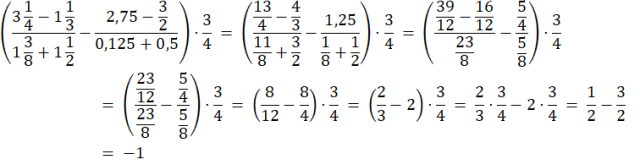 Zamień wszystkie liczby na ułamki zwykłe niewłaściwe. Pamiętając o kolejności wykonywania działań, upraszczaj wyrażenie.
