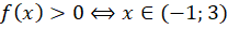 Odczytaj przedziały argumentów, dla których wykres funkcji znajduje się nad osią OX (wartości przyjmowane przez funkcję są dodatnie).
