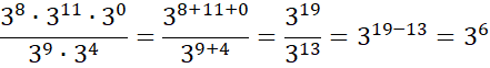 Skorzystaj z tego, że iloczyn potęg o takim samych podstawach możesz zamienić na dodawanie ich wykładników: , a ich iloraz na odejmowanie wykładników: