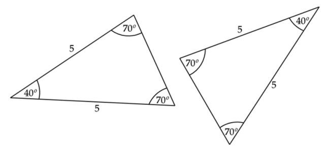 Trójkąty są przystające, z cechy BKB, ponieważ mają takie same długości ramion i takie same miary kątów.