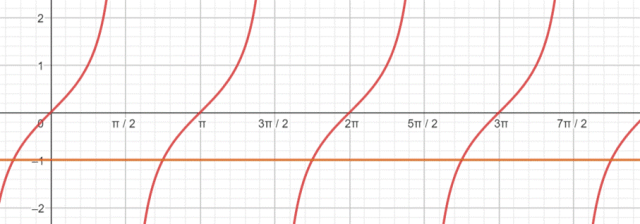Narysuj wykres funkcji tangens lub cotangens i zrób obliczenia. Zapisz liczbę, która jest najmniejsza w przedziale (3; ∞) i która spełnia to równanie.