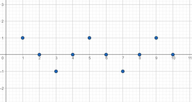 Zauważ, że kolejne wyrazy ciągu nie zbliżają się do konkretnej wartości, zatem ciąg nie ma granicy.