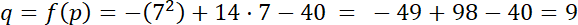 Współrzędne wierzchołka paraboli to W = (7, 9).