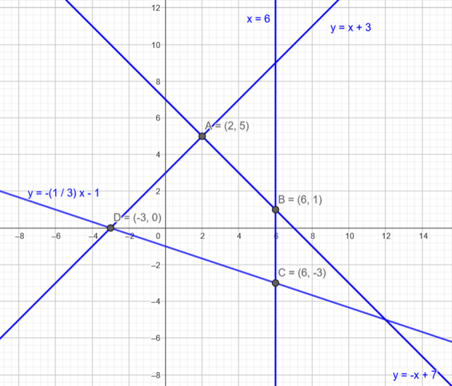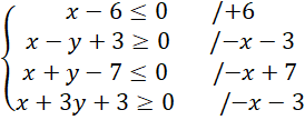 Powyższe nierówności zapisz w postaci równań. Narysuj uzyskane proste w układzie współrzędnych i zaznacz wierzchołki powstałego wielokąta.
