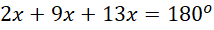Znajdź miary kątów trójkąta, których stosunek jest równy 2:9:13.