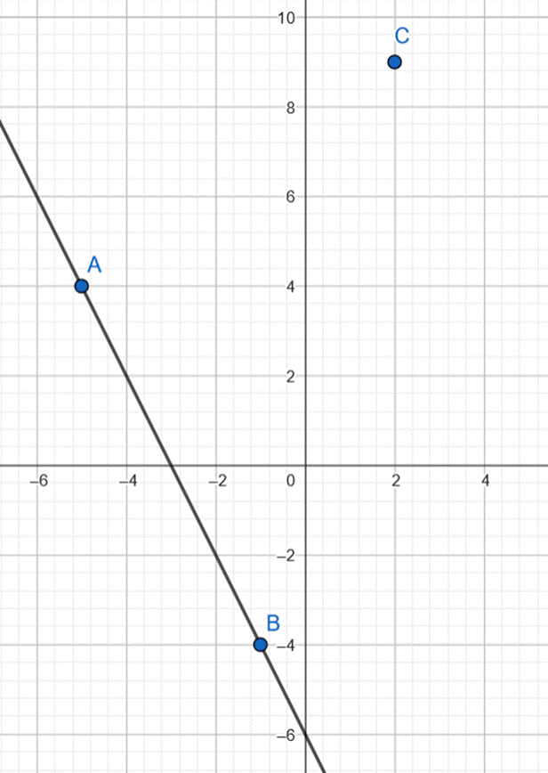 Ustal, czy punkt C(2,9) należy do prostej AB, dla której A(-5,4), B(-1,-4).