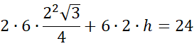 Wyznacz wysokość graniastosłupa prawidłowego, jeżeli jego podstawą jest sześciokąt, krawędź podstawy ma długość 2, a jego pole powierzchni całkowitej jest równe 24.