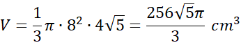 Następnie zauważ, że promień, wysokość i tworząca stożka tworzą trójkąt prostokątny, skorzystaj z twierdzenia Pitagorasa i wyznacz długość wysokości a następnie oblicz objętość bryły, korzystając ze wzoru