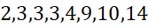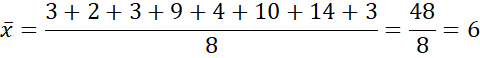 Wyznacz średnią arytmetyczną, medianę i dominantę podanych liczb. 3, 2, 3, 9, 4, 10, 14, 3