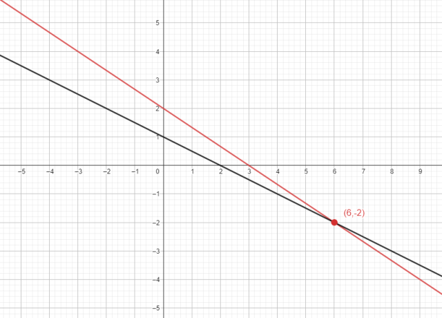 Stwórz szkice wszystkich prostych wchodzących w skład układu równań. Rozwiązaniem tego układu są współrzędne punktu przecięcia wszystkich prostych. Następnie rozwiąż algebraicznie ten układ i porównaj otrzymane wyniki.