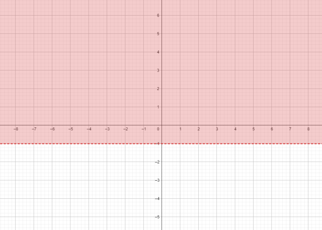 Zbiór punktów spełniających nierówność tworzy półpłaszczyznę (otwartą, bo znak nierówności jest mocny) nad prostą .